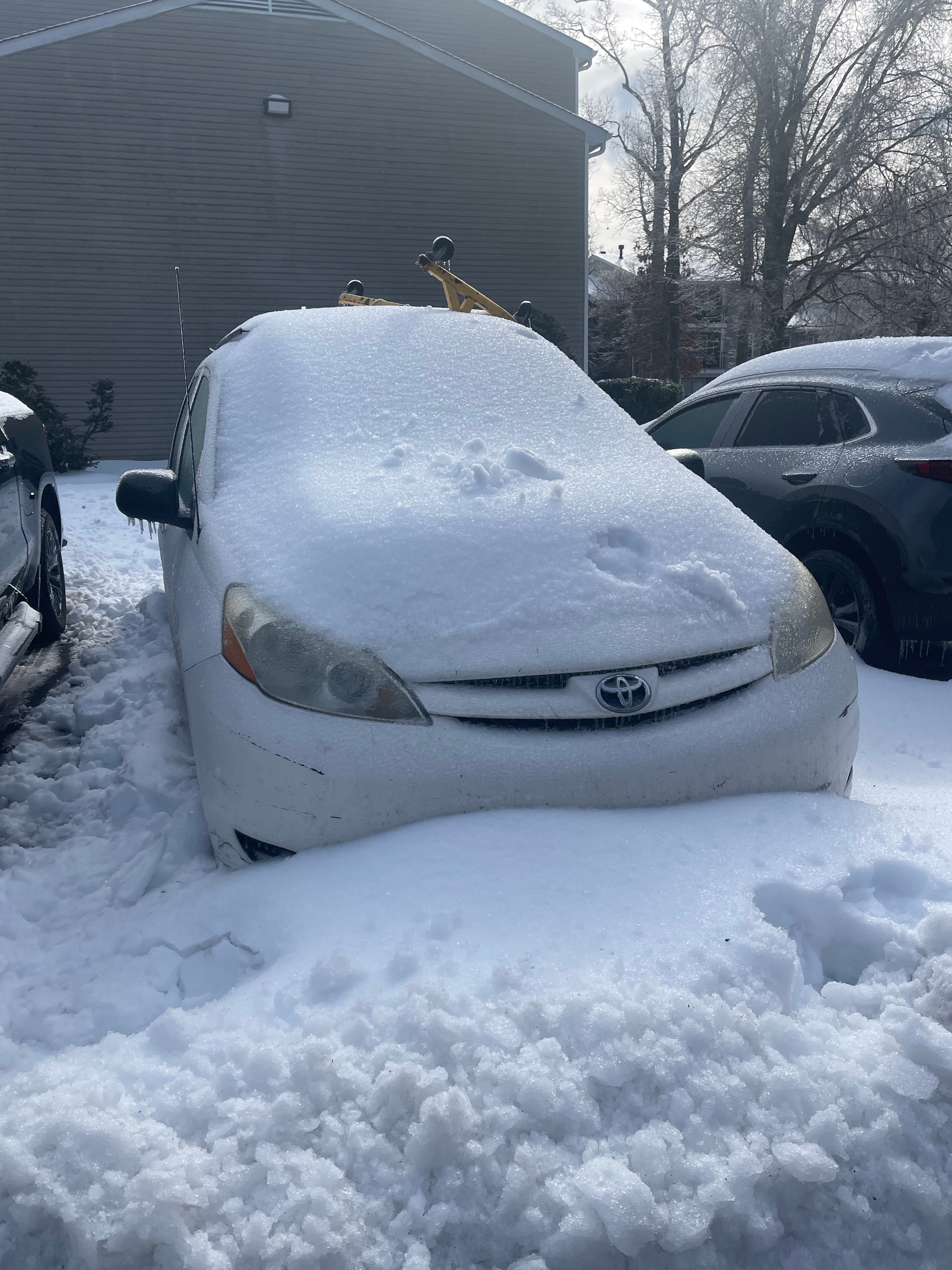 Ten inches of fluffy snow covered by three inches of sleet and frozen rain…